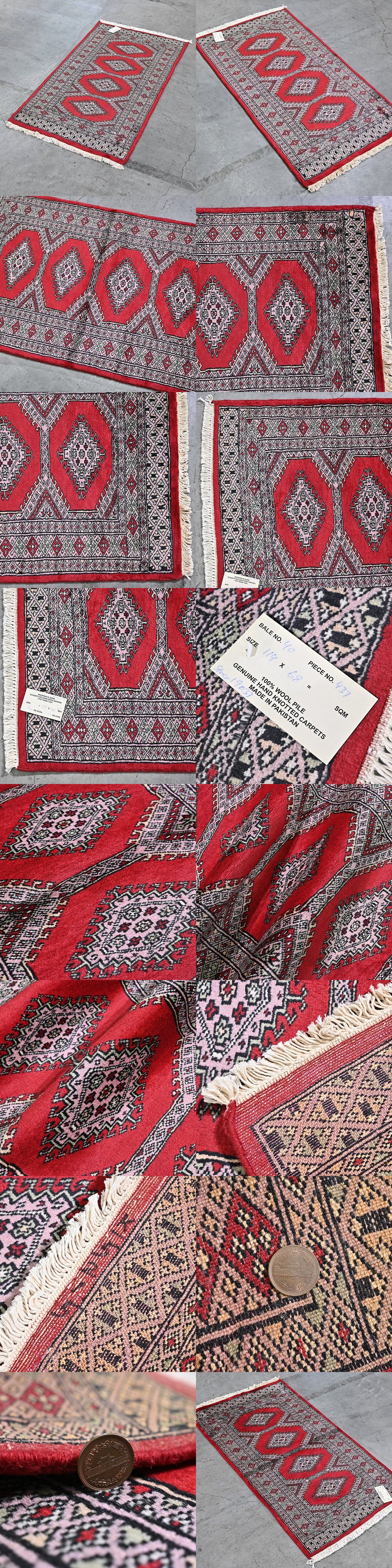 > 新品 未使用 パキスタン製 手織り ウール絨毯 ラグ ボハラ柄 ギュル文様 ハンドノット 羊毛 カーペット マット ホテル 応接室 P-144