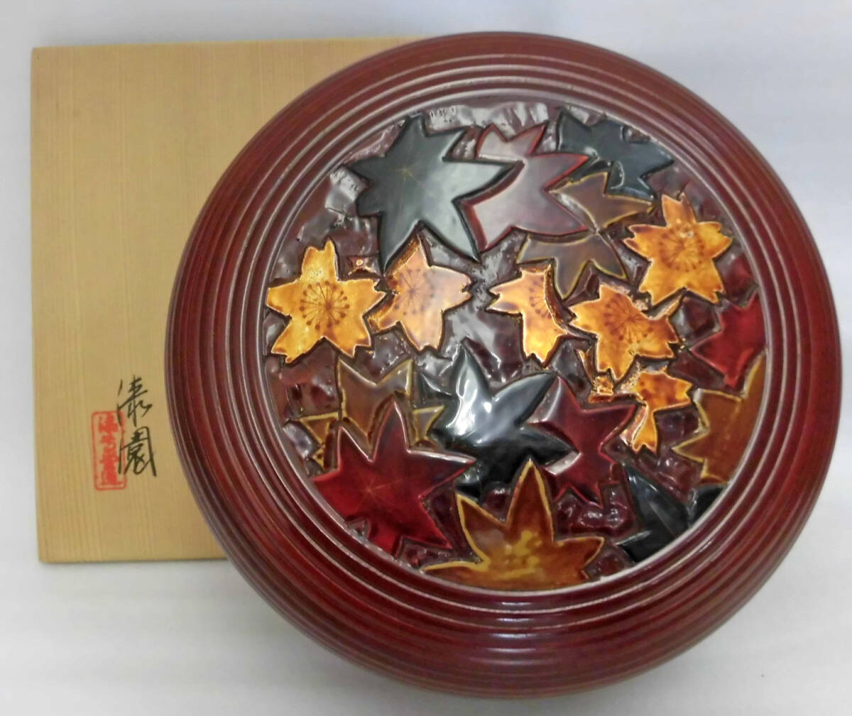 - 吹寄せ色漆陽刻喰篭 漆園(漆巧堂製)共箱 茶道具
