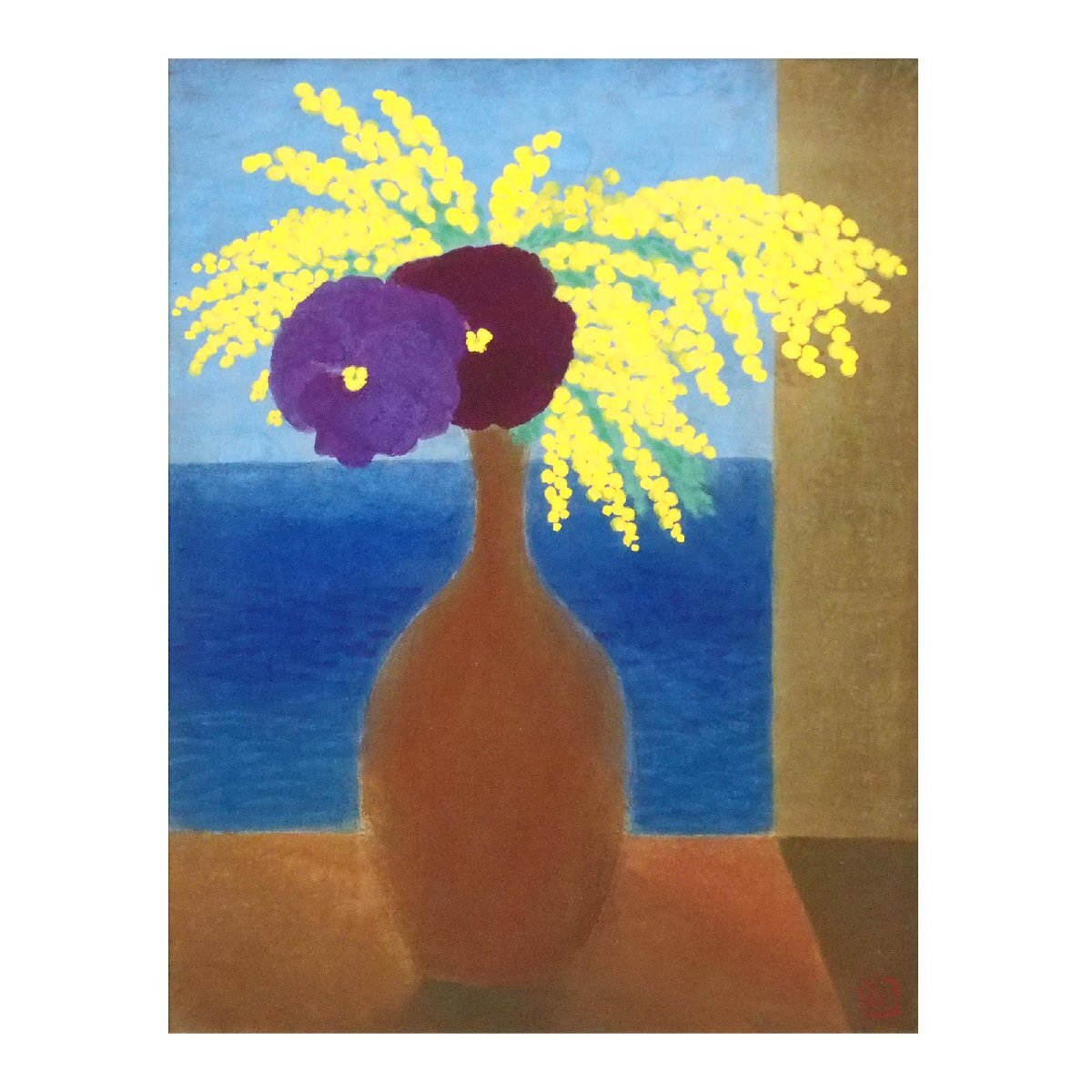 - 小栗正 「すみれ」 /紙本彩色6号/落款・共シール有り/郷倉千靭に師事/昭和の時代に活躍/日本美術院特待/真作保証/ENCHANTE