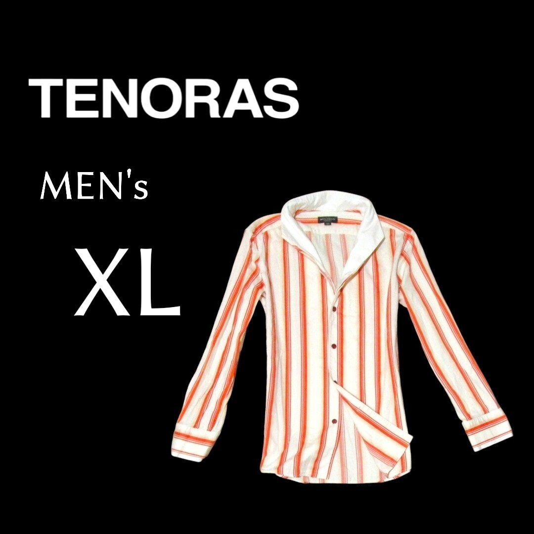 - 送料込み メンズXLサイズ TENORASティノラス スタンドカラーシャツ ストライプ柄 オレンジ色