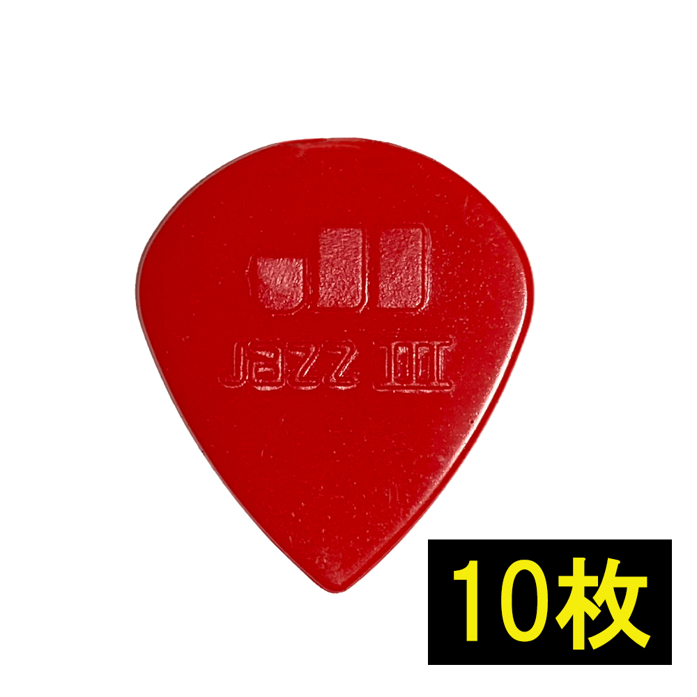 - ギターピック ジャズ3 赤 10枚 ティアドロップ JazzⅢ III