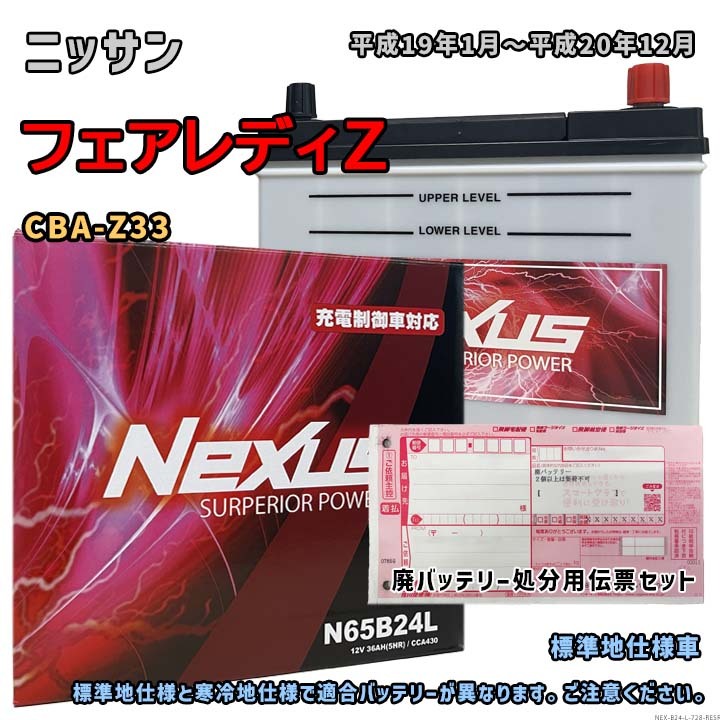 - バッテリー NEXUS N65B24L 廃バッテリー回収サービス付 ニッサン フェアレディZ CBA-Z33 平成19年1月~平成20年12月 対応 B24L 互換 728