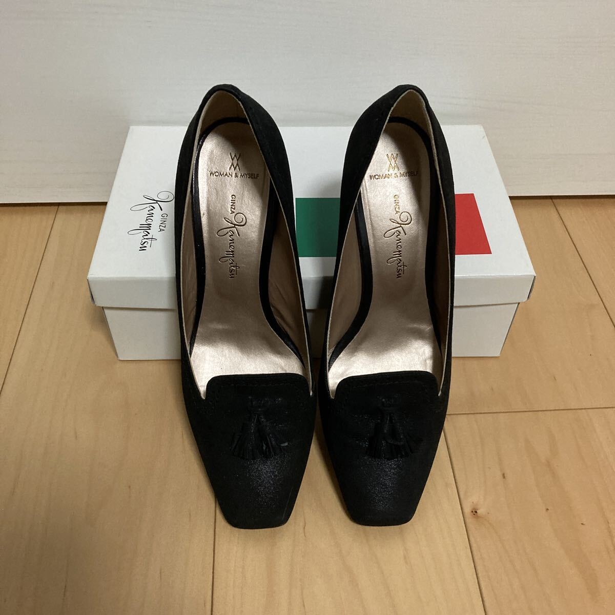 - 銀座かねまつ 柔らかな履き心地WOMAN&MYSELF ラメ入り ブラックパンプス 24cm E 黒 デート 結婚式
