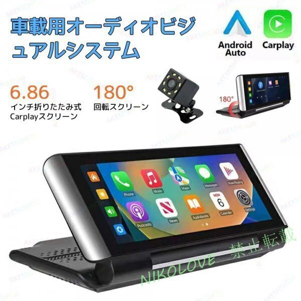 > 6.86インチ 車載用モニター ドライブレコーダー 折りたたみ式スクリーン 車載用ディスプレイ ワイヤレスカープレイ 有線&無線 180°H6800