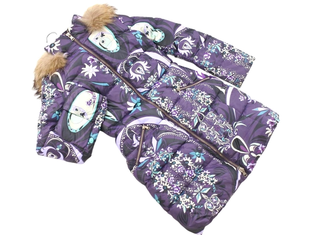 > EMILIO PUCCI エミリオプッチ ナイロン マーモットファー 総柄 ダウン コート size40/紫 ◆■◎ ☆ fjc2 レディース