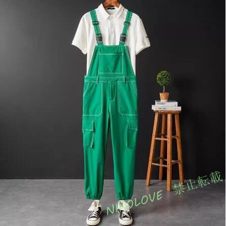 - ☆新品サロペット メンズ オーバーオール つなぎ オールインワン ペインター サスペンダー ストリート 作業服 春秋 お洒落M~3XL/緑