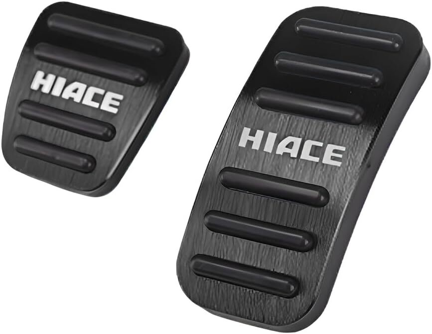 - ハイエース200系 専用設計 1型~6型対応 ロゴ付き アルミアクセルペダル ブレーキペダルカバー ブラック 滑り止め ドレスアップ パーツ