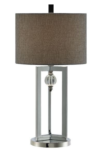 スタイリッシュなクローム仕上げのメタルフレームに、上品な輝きを放つクリスタルアクセントを組み合わせたテーブルランプ。