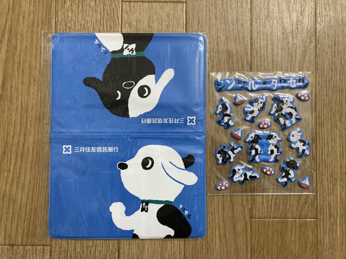 - 新品非売品☆銀行 通帳ケース おまけ付きシンジル&タクセルぷくぷくシール 可愛い犬 ブルー
