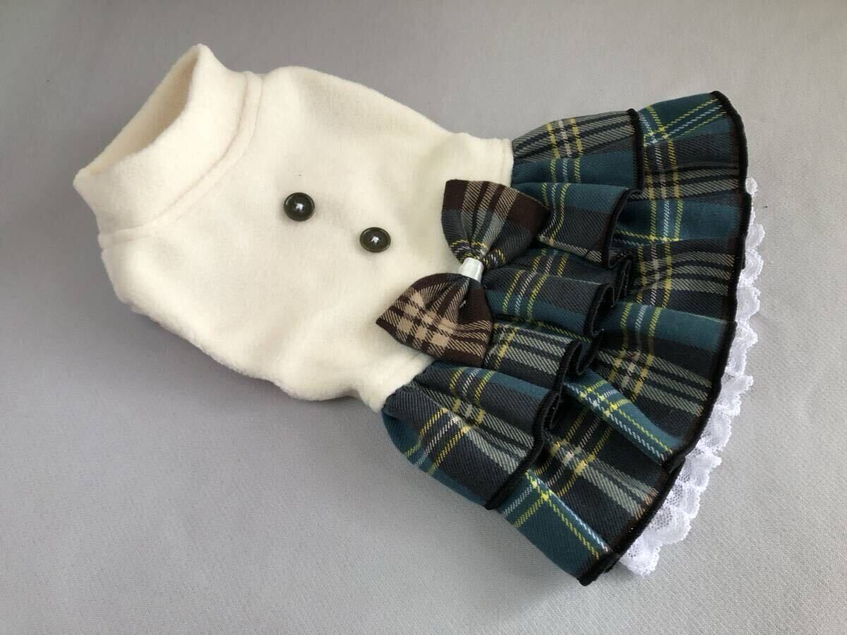 - ◇胴34◇起毛ニット◇グリーン系タータンフリルスカートワンピ