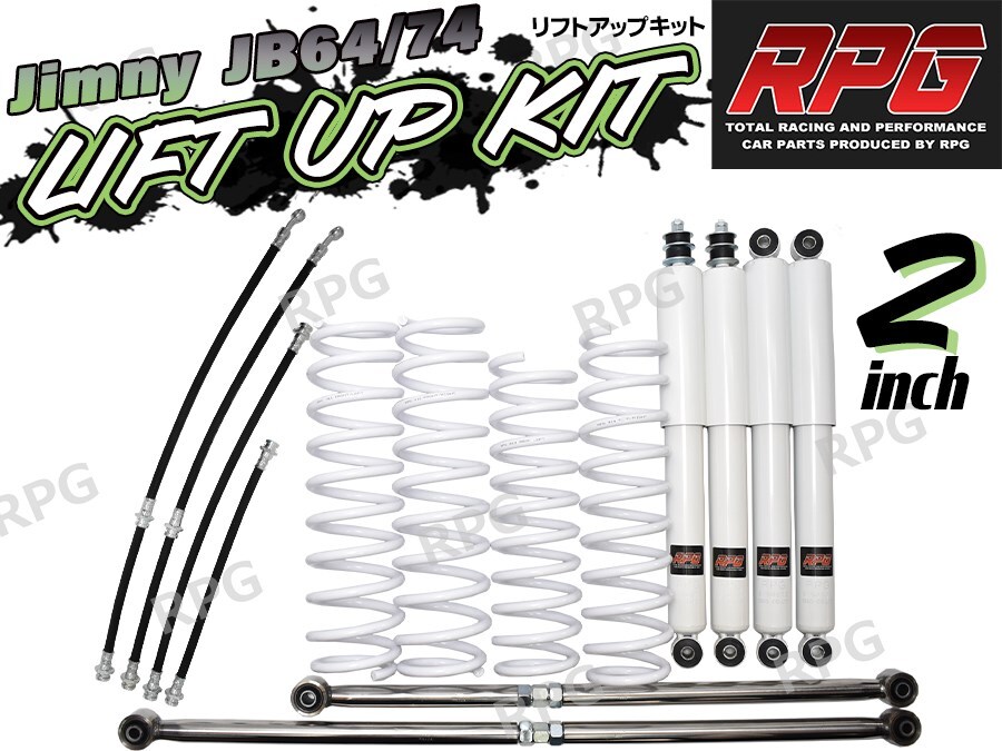 > ジムニー JB64W JB74W 2インチ リフトアップキット RPGロングショック白 ステンラテ コイル白 ロングブレーキホース付き