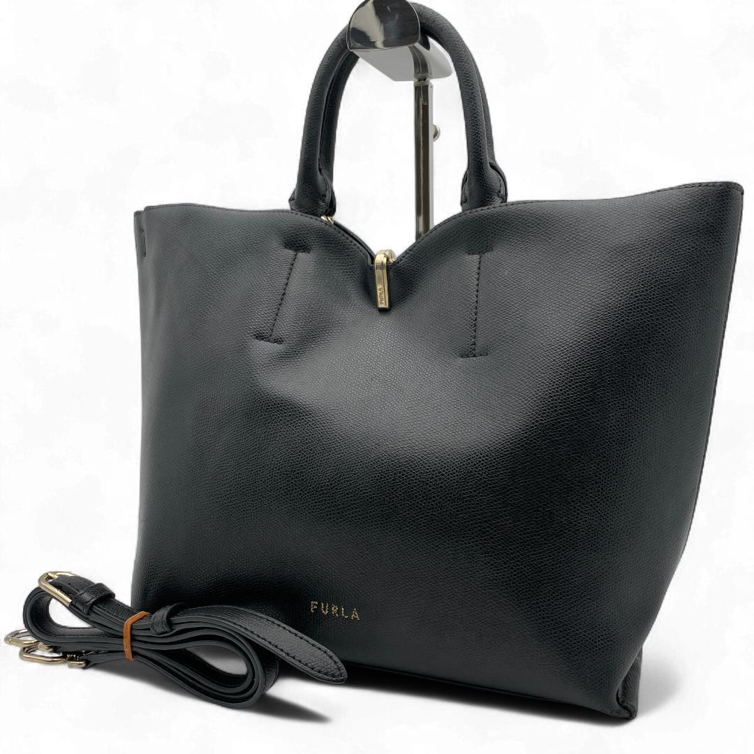 - 良品 FURLA ハンドバッグ レザー ブラック 2way