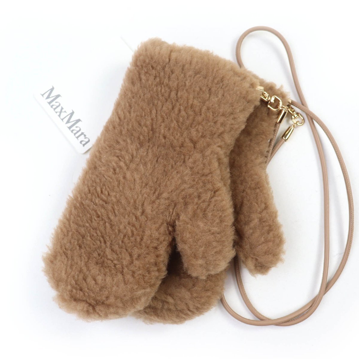 - 未使用品☆Max Mara マックスマーラ 2345660733 テディ ミトン キャメル シルク ストラップ付 手袋 ブラウン ML イタリア製 正規品