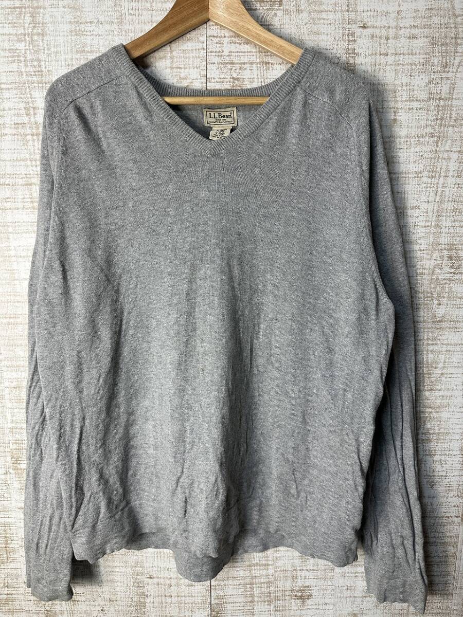 - ☆ビッグサイズ US古着 L.L.Bean エルエルビーン 90s 90年代 ニット セーター Vネック コットンカシミア グレー レディース【XL】 ◆5327◆