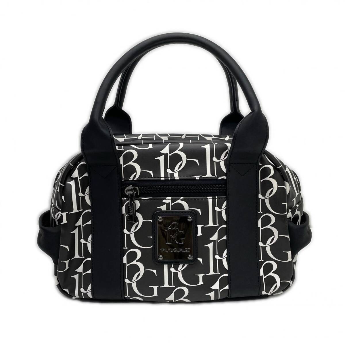 > coco 中古 ウノピュウノウグァーレトレ 1piu1uguale3 カートバッグ 黒 ブラック ロゴ柄 ラウンドバッグ K023645