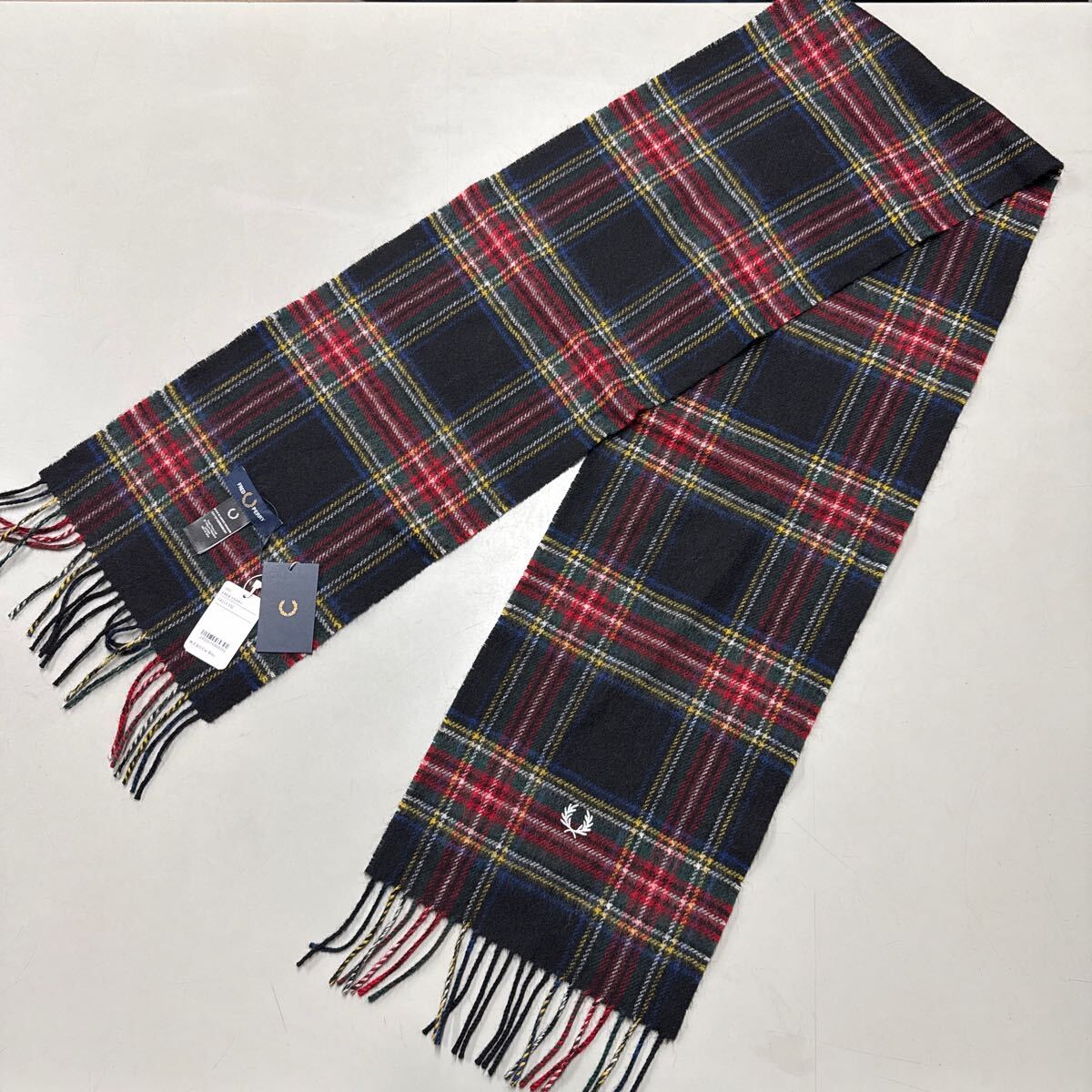 - FRED PERRY フレッドペリー チェック柄 マフラー 未使用 メンズ レディース ウール wool