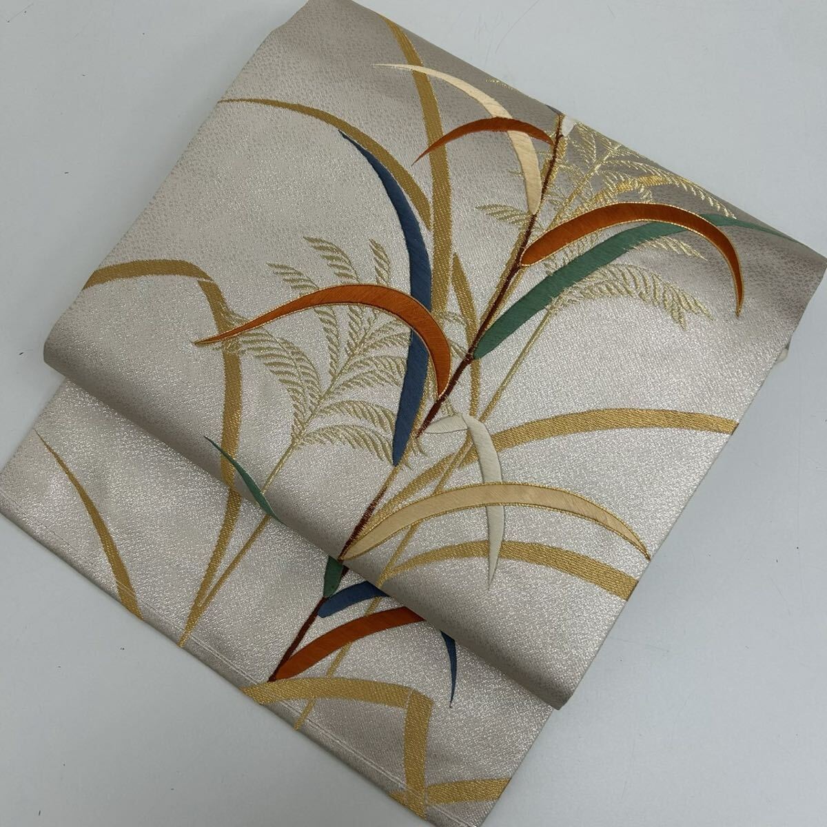 > 名古屋帯 上品な草模様 金彩 着物 正絹 W-5376