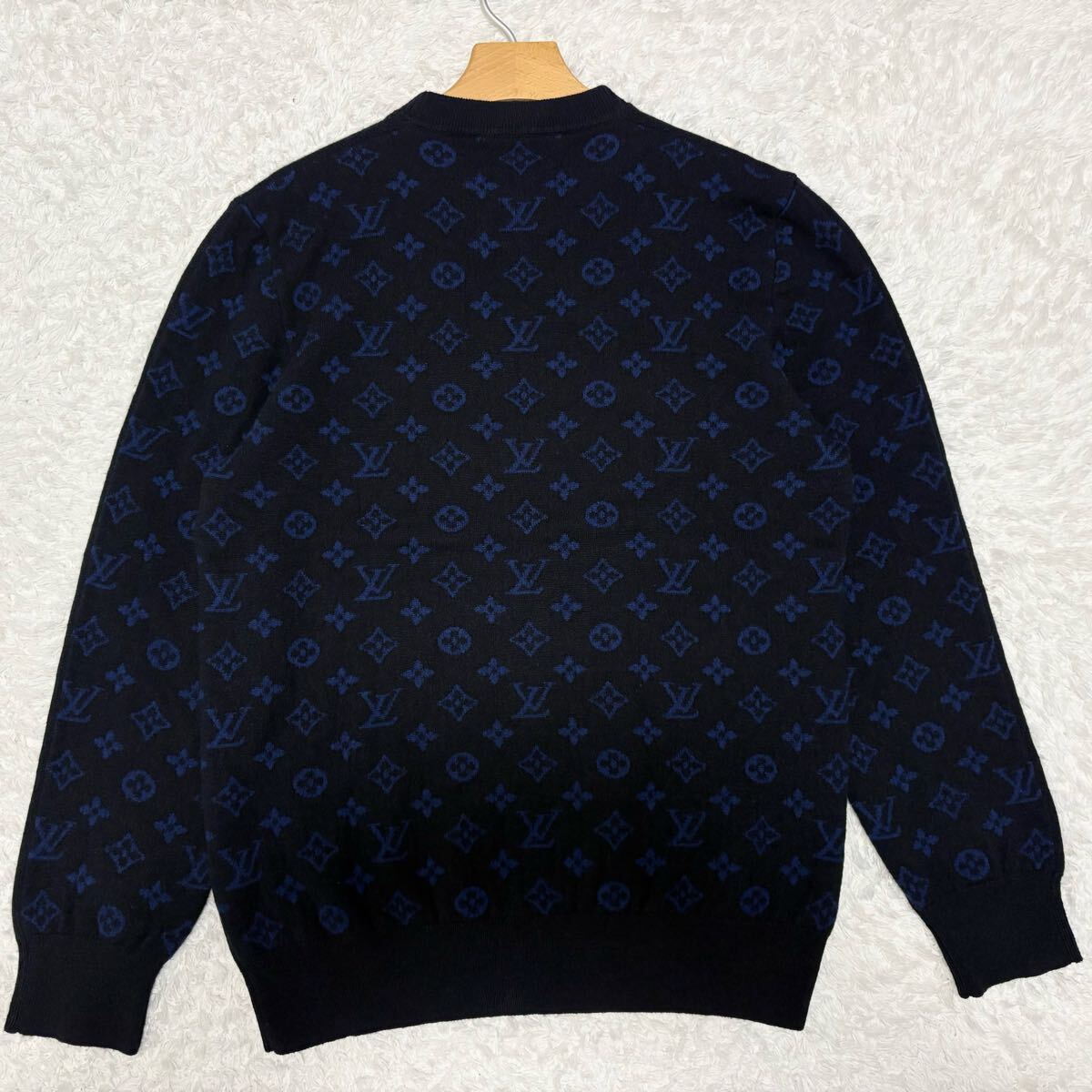 > 美品/Lサイズ●LOUIS VUITTON ルイヴィトン カシミヤ ニット セーター モノグラム ハーフ&ハーフ ハーフアンドハーフ メンズ ネイビー 青系