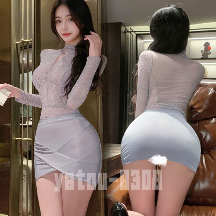 - K215B コスプレウェア 誘惑 透け透けレース トップス ミニスカート 女教師 秘書 OL コスプレウェア ナイトウェア