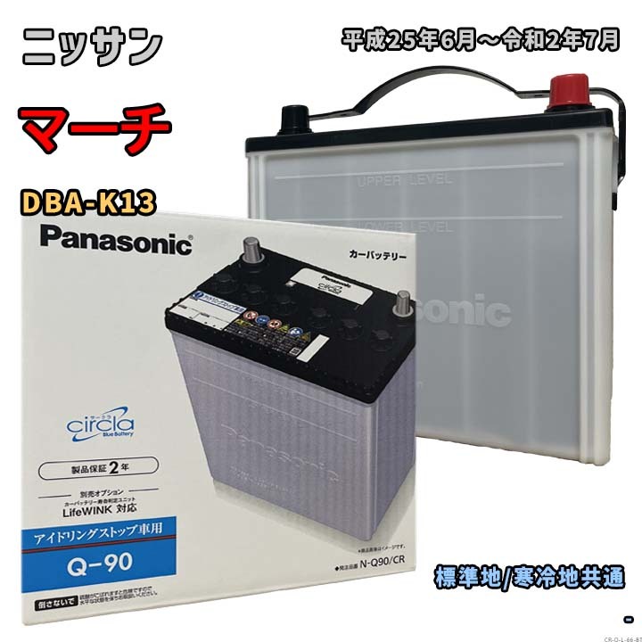 - バッテリー パナソニック N-Q90/CR ニッサン マーチ DBA-K13 平成25年6月~令和2年7月 対応 Q-85 互換 66