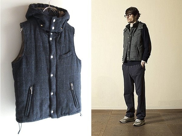 - LOOK使用同型 STILL BY HAND スティルバイハンド MOON社/英国製生地 ムーン ウールツイード 中綿/シンサレート 2WAY エコダウンベスト 46