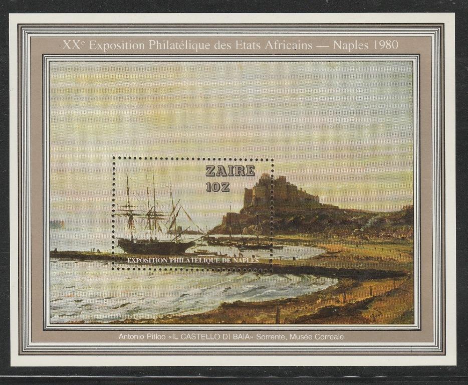 - (ザイール)1980年ナポリ切手展小型シート、スコット評価6ドル(海外より発送、説明欄参照)