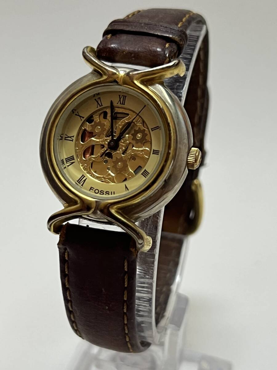 > 動作未確認 FOSSIL フォッシル ラウンド ゴールド SK-4911 クォーツ レディース 腕時計 時計