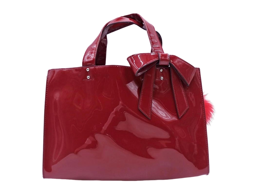 > VertDense ヴェールダンス エナメル ファーチャーム ハンド バッグ 赤 ■■ ☆ fjc3 レディース