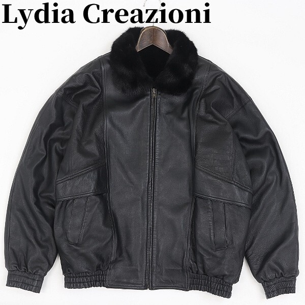 > 【HA819】◆Lydia Creazioni レザー×ミンクファー 毛皮 リバーシブル ジップ ジャケット 黒 ブラック XXL