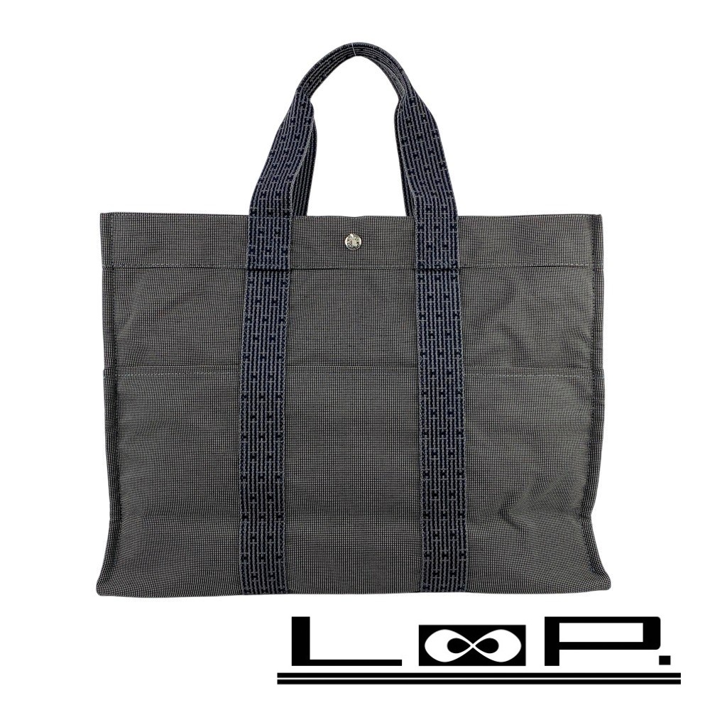 > ■未使用■ エルメス エールライン トート GM バッグ カバン キャンバス グレー 【460111】5