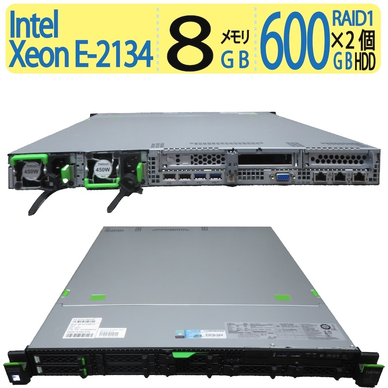 - 【サーバー】◆ FUJITSU PRIMERGY RX1330 M4 ◆ Xeon E-2134 / 600GB×2 HDD【RAID1】 / メモリ8GB [3/4空]◆ Windows Server 2019