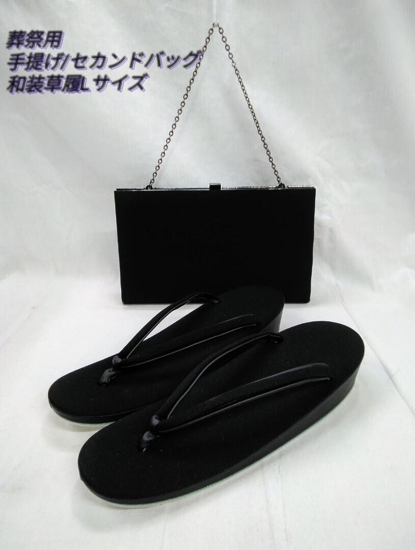 - g_t G483 葬祭用 和装草履Lサイズと洋服/和装 両用 セカンド/手提げバッグ【未使用長期保管品】