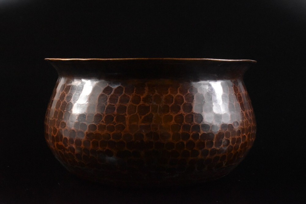 - 【雲】某名家買取品 銅製 槌目柄建水 古美術品(茶道具) F8966