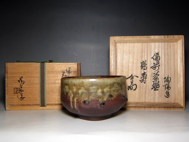 - 人間国宝 金重陶陽 備前茶碗 「鶴寿」 裏千家十四代 淡々斎花押 e993