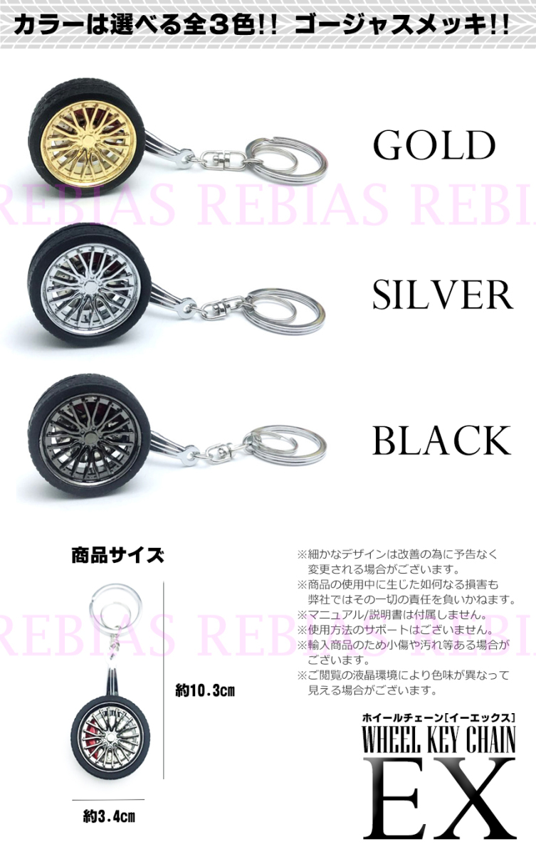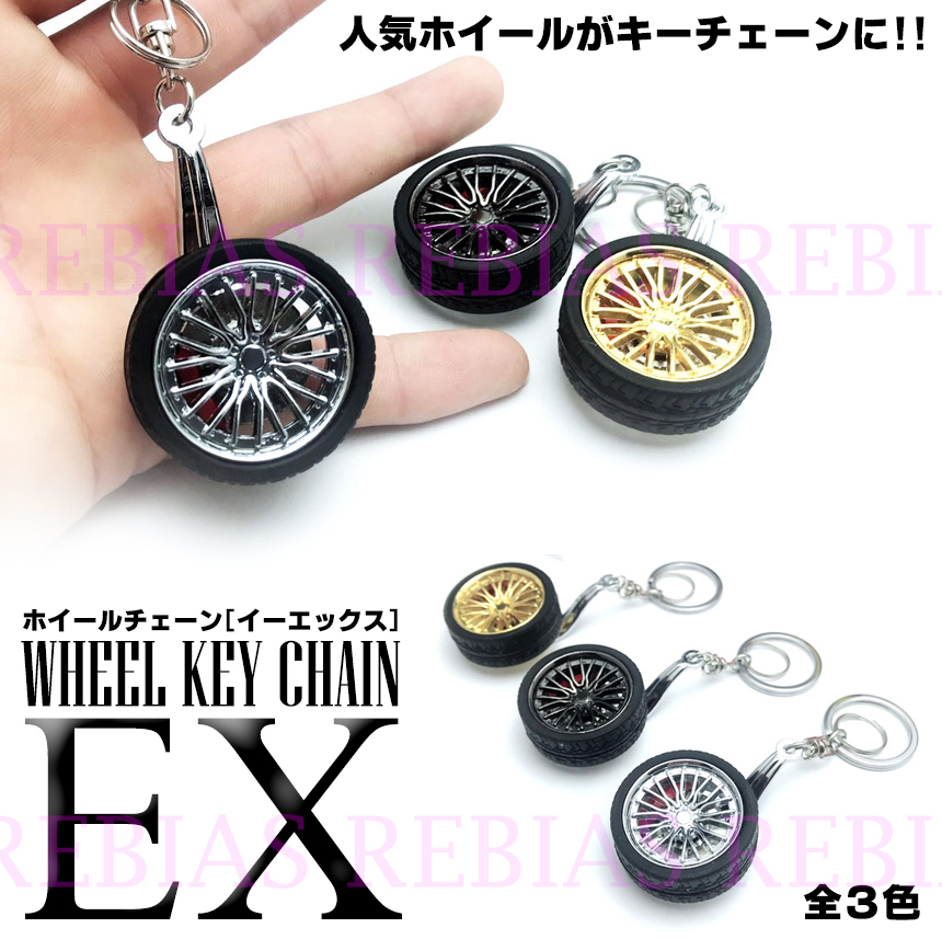 - 送料無料 ホイール キーホルダー EX 【ゴールド】 タイヤ キャスト リアル キーチェーン WHEEL