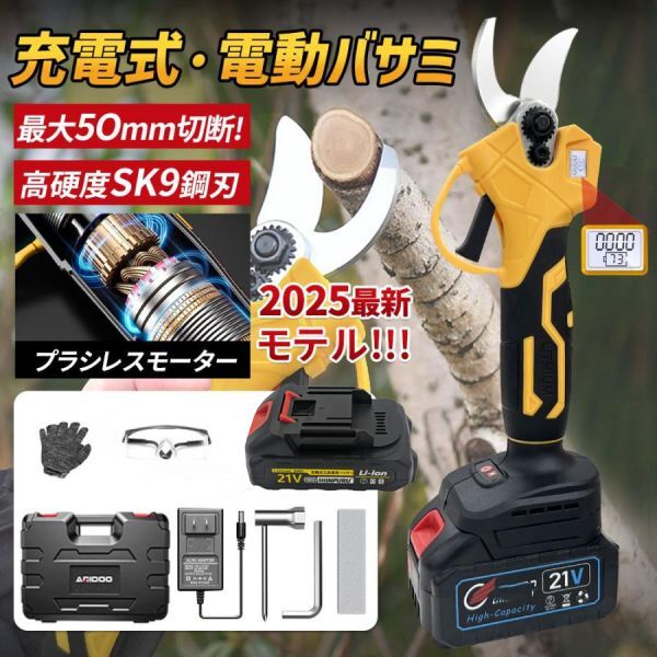 - 電動剪定バサミ 電動ハサミ 50MM切断径 剪定ハサミ 電動鋏 枝切りバサミ 軽量 片手 パッテリー1個 コードレス 果樹 庭木 園芸はさみ