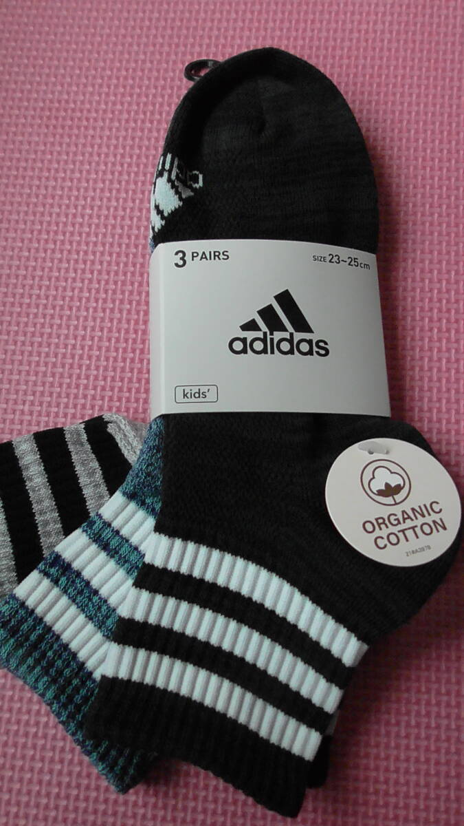 - 新品 adidas 3足組 オーガニックコットン綿混 キッズソックス 23cm 24cm 25cm アディダス リブ クルーソックスセット 子供 男の子 送料無料