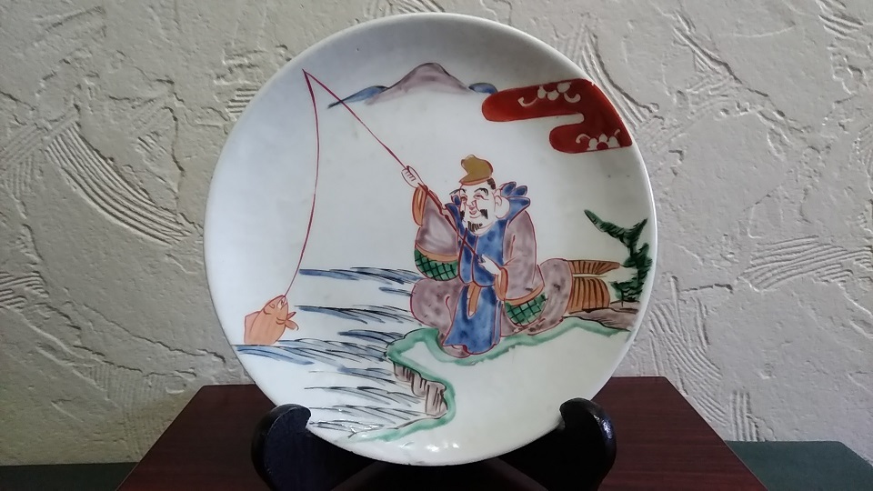 > ☆☆【美術工芸・インテリア】招福 鯛えびす 手書き色絵恵比須 飾り皿/和食器 陶磁器/陶芸 飾り食器 骨董