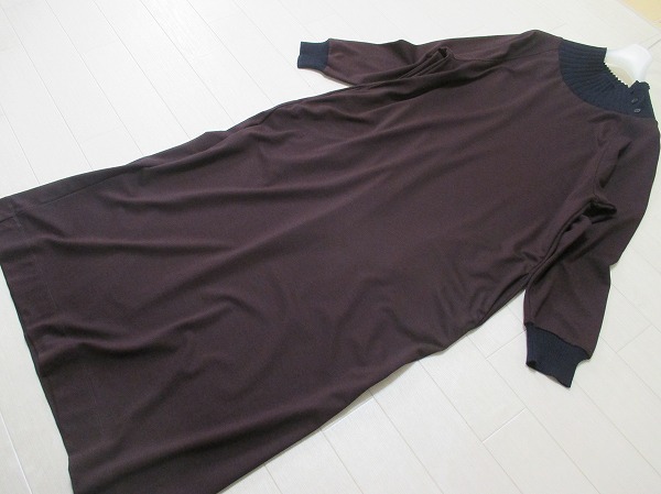 - ヒューマンウーマン*human woman 襟袖口リブニット切替ロングワンピース Mサイズ