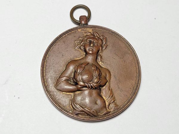 - 1953年(昭和28年)「岡山市教育功労者褒賞」月桂冠をかぶった女性のレリーフが描かれた古いメダル