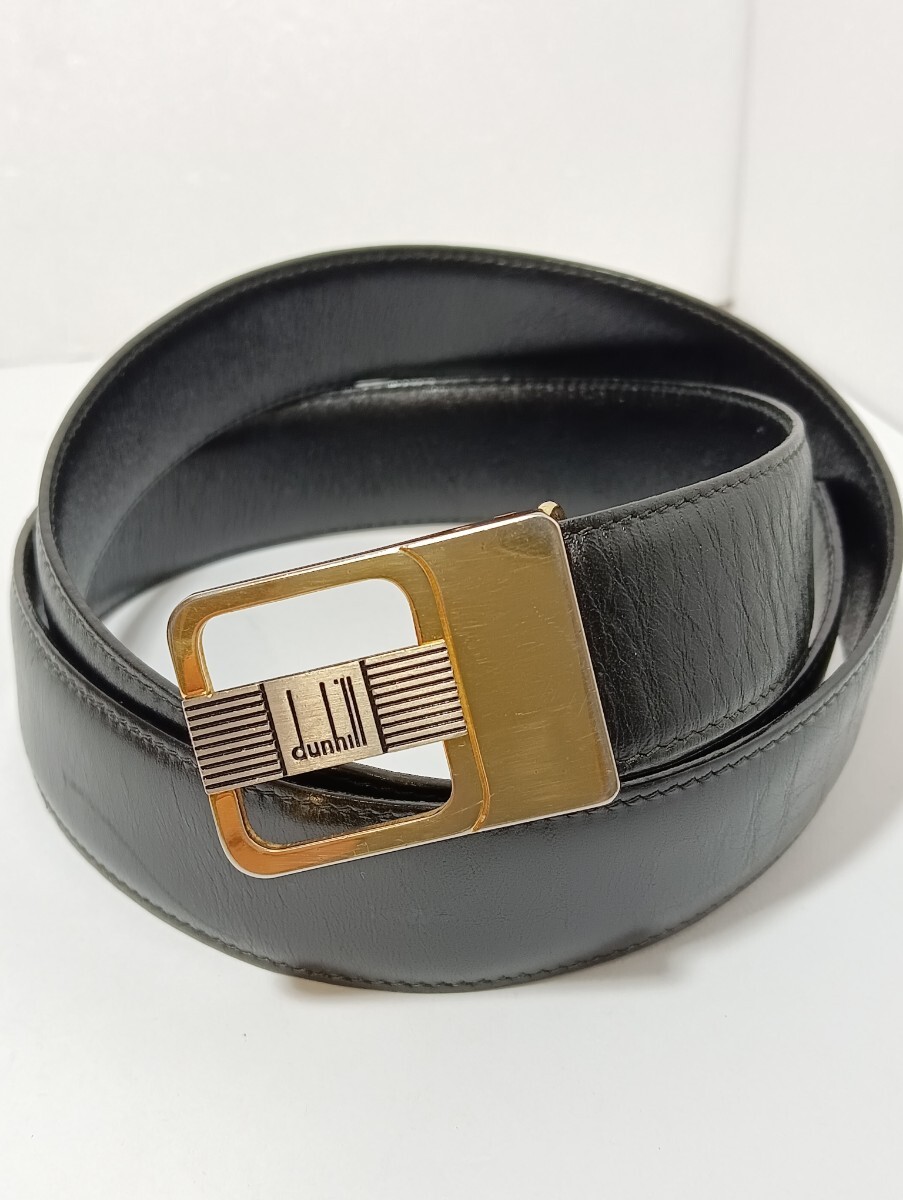 - 1円【良品/現状品】dunhill ダンヒル ベルト レザー シルバー×ゴールド金具 ブラック メンズ