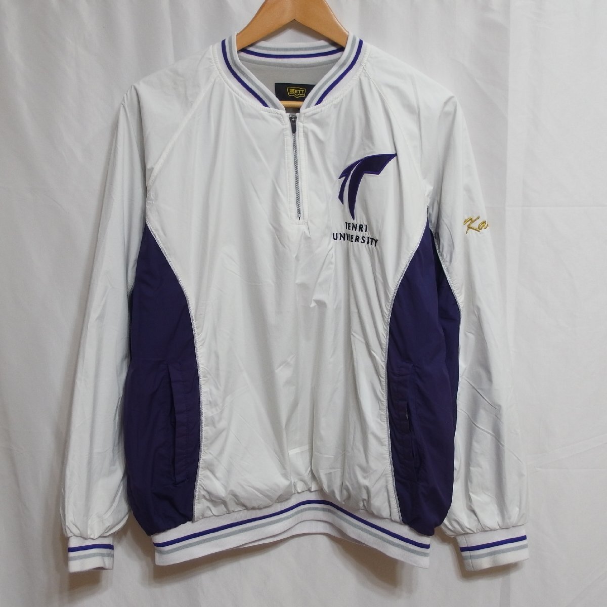 > 大学野球◆天理大学 硬式野球部 ZETT製 ハーフジップジャケット(白)サイズL・実使用・現状渡し品◆USED D