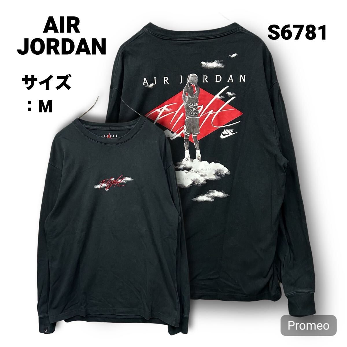 > 【S6781】 NIKE AIR JORDAN ナイキ エアージョーダン 長袖Tシャツ ロンT サイズM ブラック 黒 バッグプリント メンズ トップス 最落なし