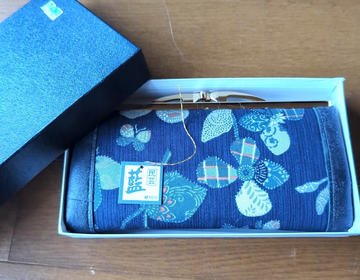 - 花柄長財布 青色 布製 藍染 がま口 小銭入れ 財布