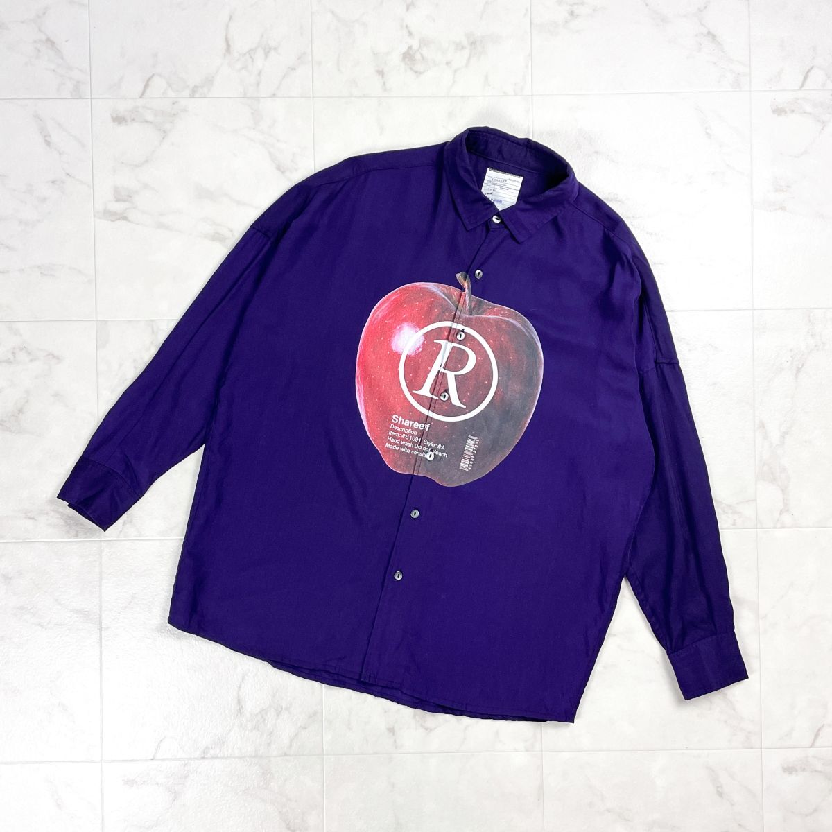 - 美品 SHAREEF シャリーフ アップルグラフィックプリントシャツ 長袖 りんご トップス メンズ パープル 紫 サイズ1*GD1040