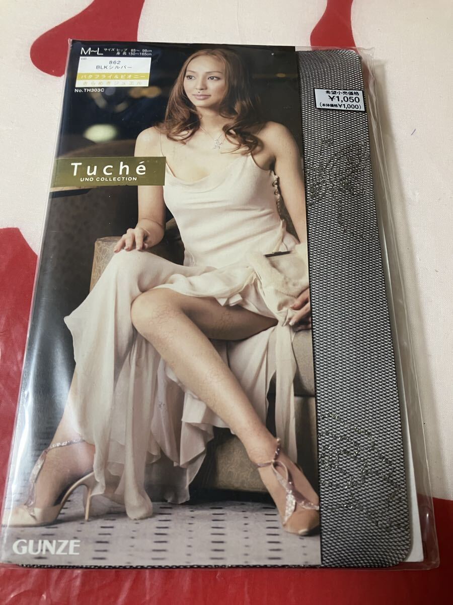 - 袋破れ gunze tuche バタフライ&ピオニー ブラック パンティストッキング グンゼ パンスト 柄 デザイン pantystocking トゥシェ 編み 網