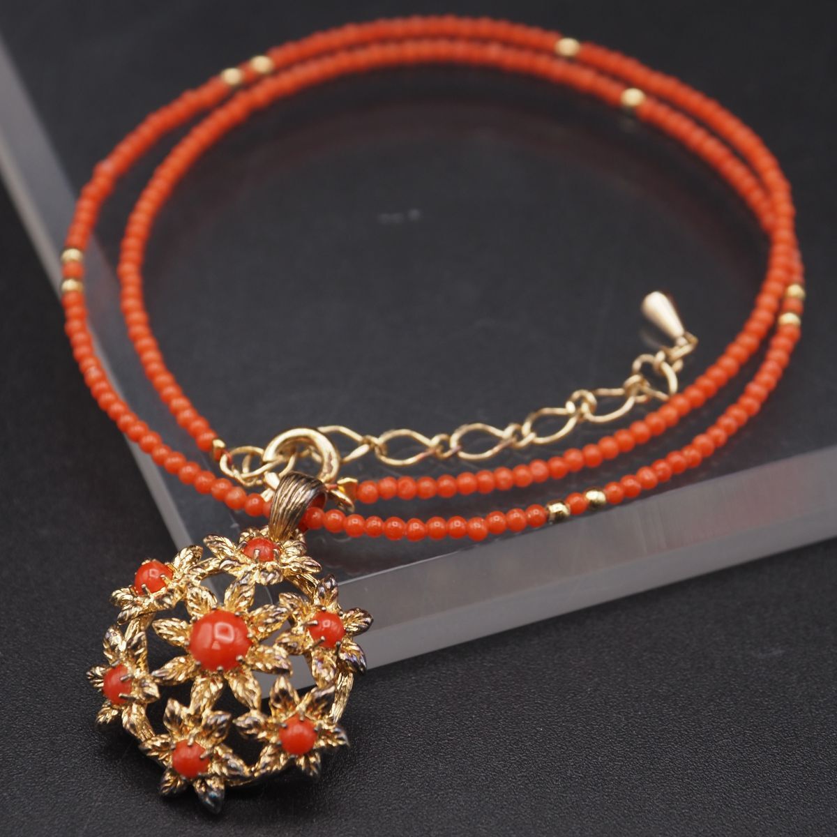 - Y905 1円 碌山 ロクザン ag 925刻印 ペンダント ネックレス 赤珊瑚 サンゴ ゴールド デザイン シルバー 3月誕生石