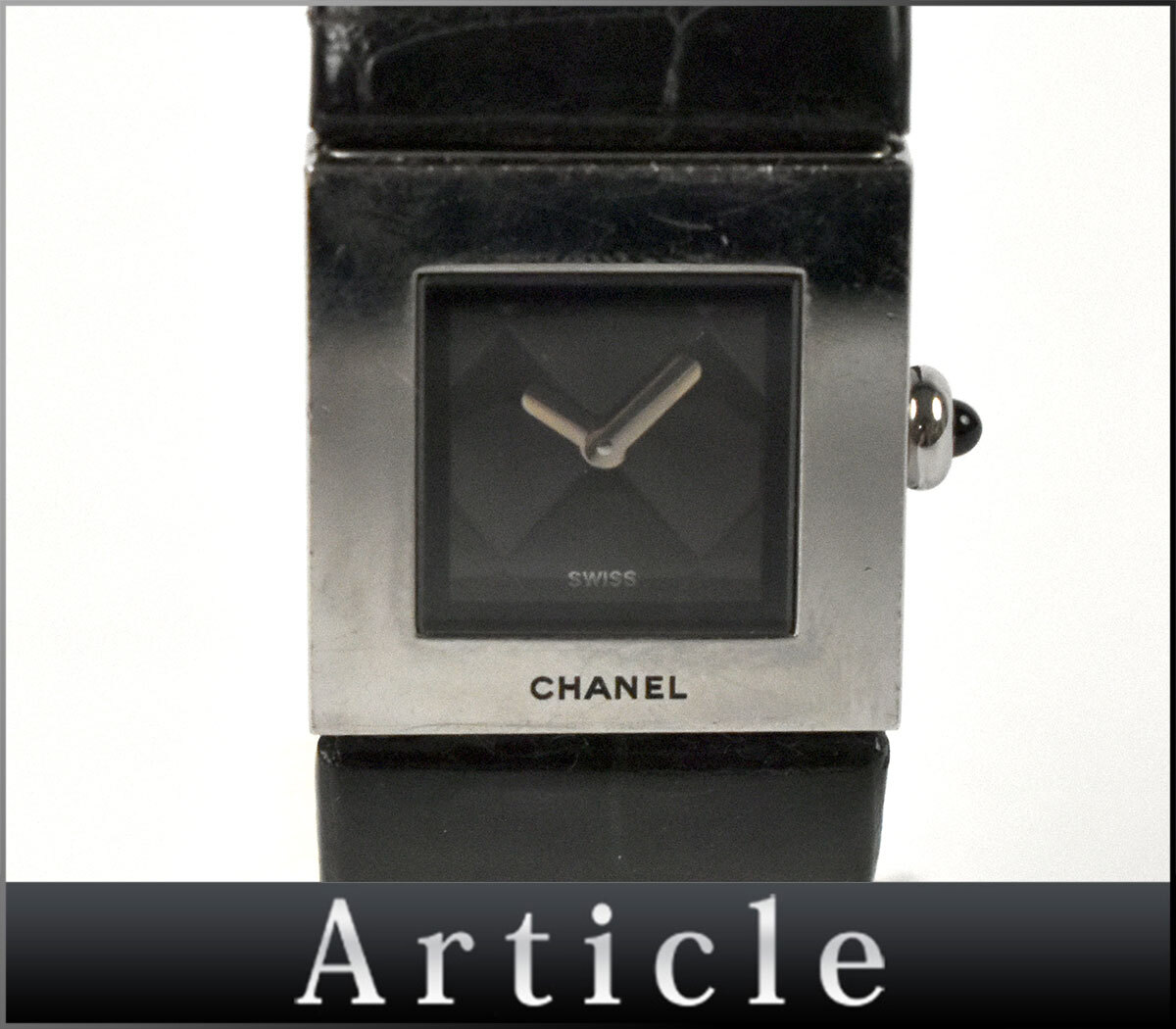 > 237866◆動作確認済 CHANEL シャネル マトラッセ レディースウォッチ 腕時計 クォーツ 2針 SS レザー 革 ブラック シルバー/ D