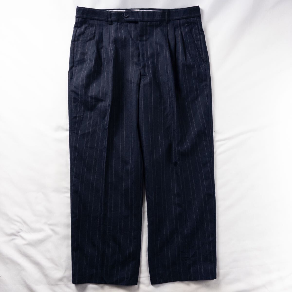- Euro Vintage 90s Vittorio St.Angelo ウール ヘリンボーン 3タック 立体 ストライプ トラッド ワイド ドレス スラックス トラウザーズ