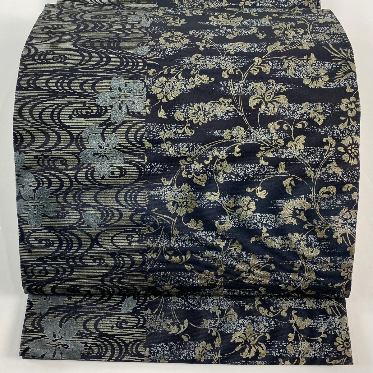 - 【美品】 袋帯 秀品 花唐草 観世水 金彩 黒 六通 正絹 【中古】